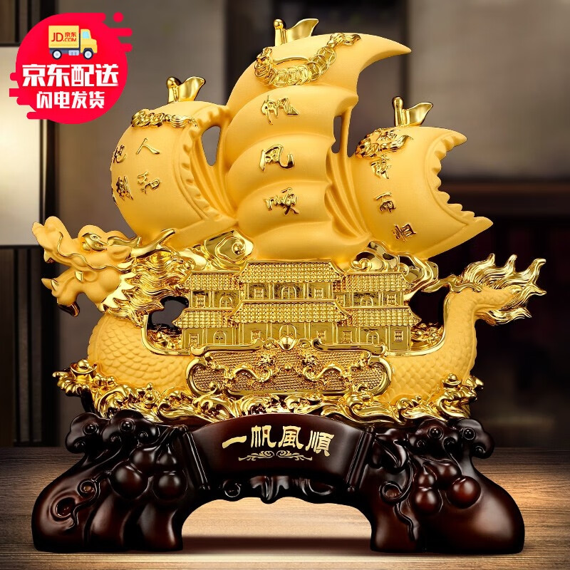 包邮 吉善缘 一帆风顺帆船摆件 龙船家居客厅办公室公司乔迁装饰开业工艺礼品 大号一帆风顺(沙金色)