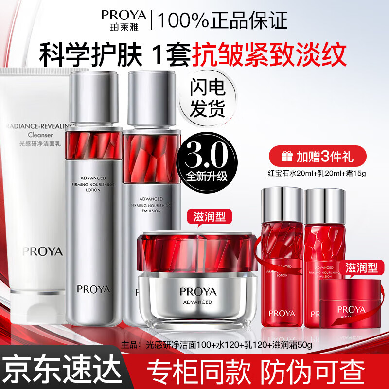 包邮 珀莱雅(PROYA)红宝石水乳套装护肤用品双抗精华补水保湿紧致抗皱礼盒送女友老婆 即将售罄【大容量四件套】洁面+水+乳+滋润霜